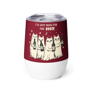 Get ready to raise a glass and have a laugh with this hilarious wine tumbler featuring our ghostly feline friends holding their favorite alcohol bottles! With the punny phrase “I’m just here for the BOOze,” this tumbler adds a spirited twist to your drinking experience. Perfect for Halloween parties or any festive gathering, it keeps your drinks at just the right temperature while giving everyone a chuckle. Whether you're sipping wine, cocktails, or a spooky punch, this tumbler ensures you do it in style—ghosts and all!